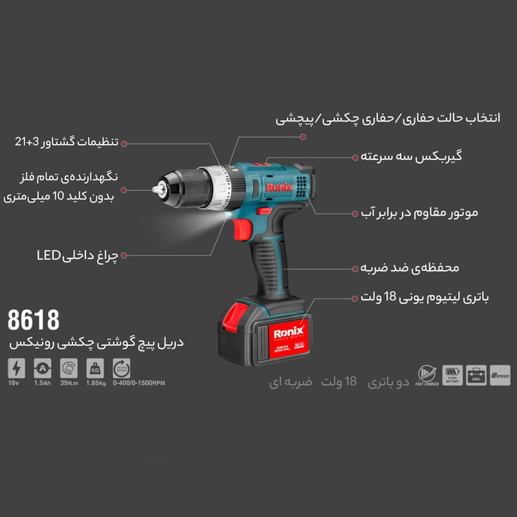 دریل پیچ گوشتی چکشی رونیکس مدل 8618