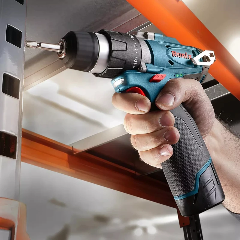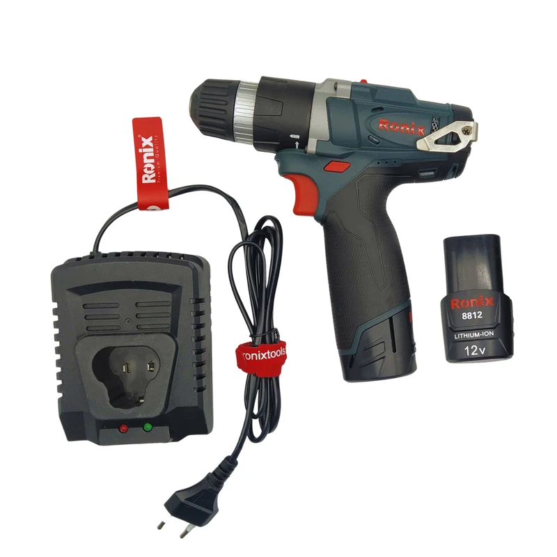 موتور قدرتمند با حداکثر گشتاور30NM مناسب انواع کاربرد دریل کاری و بازوبستن پیچها و سه نظام تمام اتوماتیک 10mm با پوشش فلزی برای افزایش مقاومت گیربکس فلزی بادوام 2 سرعته به همراه تورکمتر 1+18 حالته مناسب حالات مختلف کاری باتری پرقدرت لیتیومی 5Ah و12V با قابلیت شارژ سریع و نشانگر شارژ باتری بدنه سبک و ارگونومیک برای سهولت استفاده به همراه چراغ قوه LED برای تامین روشنایی محل کار به همراه گیره آویز فلزی گارانتی 12 ماهه رونیکس