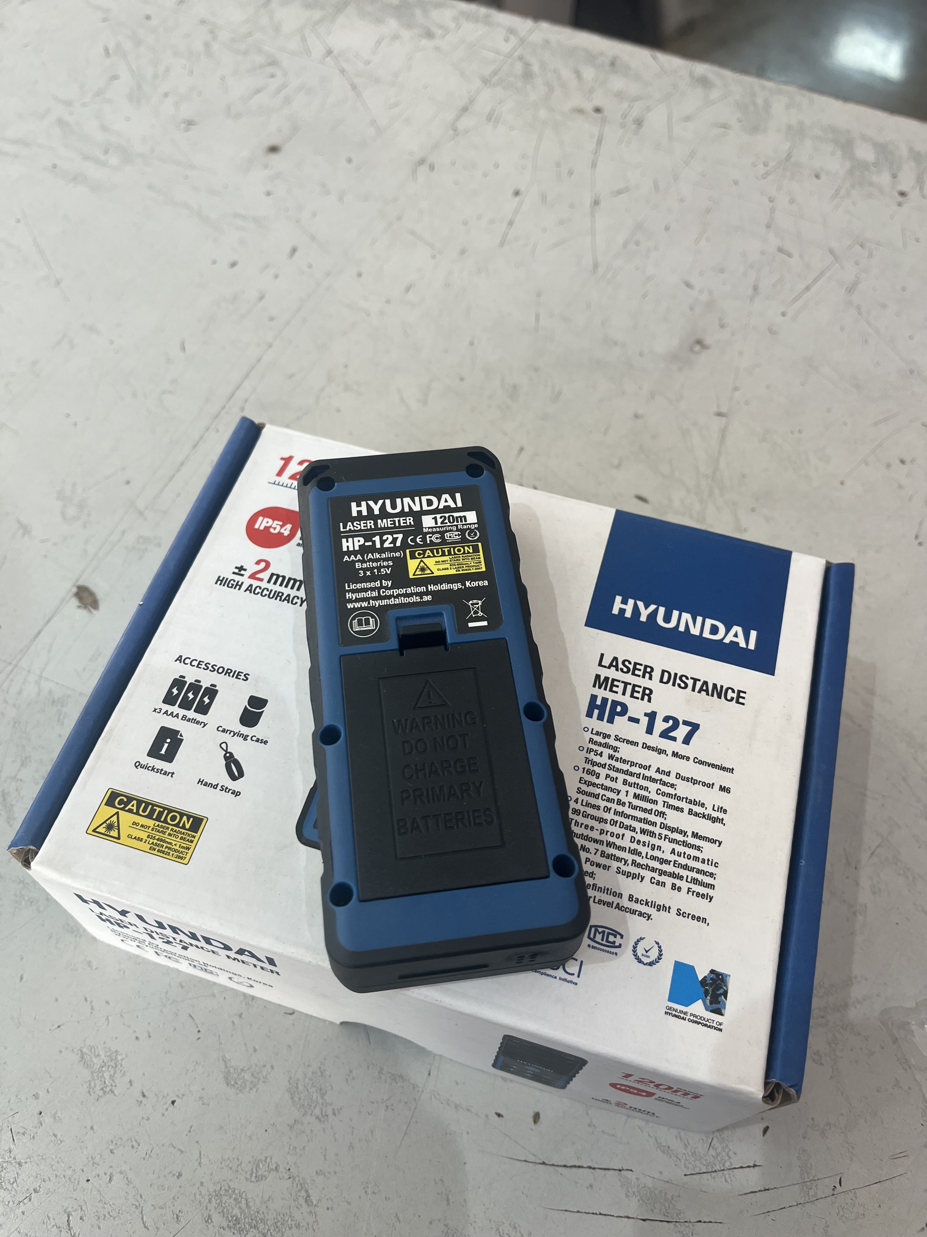 متر لیزری هیوندای مدل HP127 قابلیت اندازهگیری تا برد 120 متری با دقت اندازه گیری +- 2 میلی متر را دارد. دامنه متراژ این مدل از 0.05 تا 120 متر و دمای کاری 0 تا 40 درجه سانتی گراد را پشتیبانی میکند. لیزر مورد استفاده در متر لیزری هیوندای مدل HP127 از نوع کلاس 2 می باشد. از دیگر قابلیت های اختصاصی مترهای لیزری مدل جدید هیوندای باید به : شیب سنج، فیثاغورث، مساحت، حجم، جمع و تفریق، اندازه گیری پیوسته، قابلیت تنظیم واحد اندازه گیری و اندازه گیری حداقل و حداکثر اشاره کرد. همراه لیزر 3 عدد باتری AAA و کیف و بند دستی به همراه راهنمای راه اندازی سریع ارائه میشود. مترهای لیزری جدید هیوندای دارای استاندارد IP54 است که به معنای مقاومت در برابر آب و ذرات گرد و غبار است.